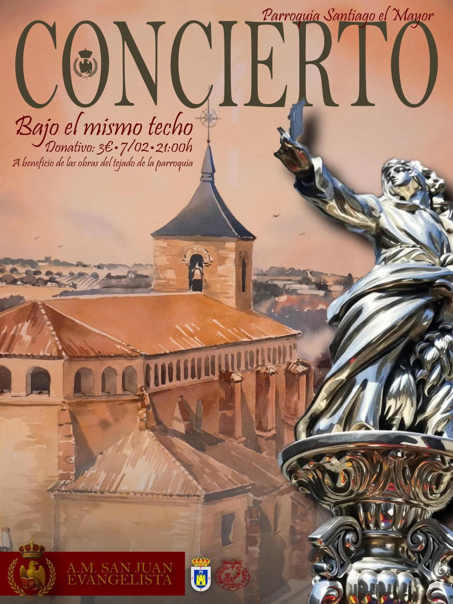 En la tarde del sábado 7 de febrero, tuvimos el honor de asistir al Concierto de la Agrupación Musical San Juan Evangelista, que con el título «Bajo el mismo techo» ofrecieron a beneficio de las obras del tejado de la Iglesia Santiago el Mayor de Membrilla, localidad natal de la agrupación que acompañará a la Cofradía Nuestro Padre Jesús del Calvario el próximo Miércoles Santo.