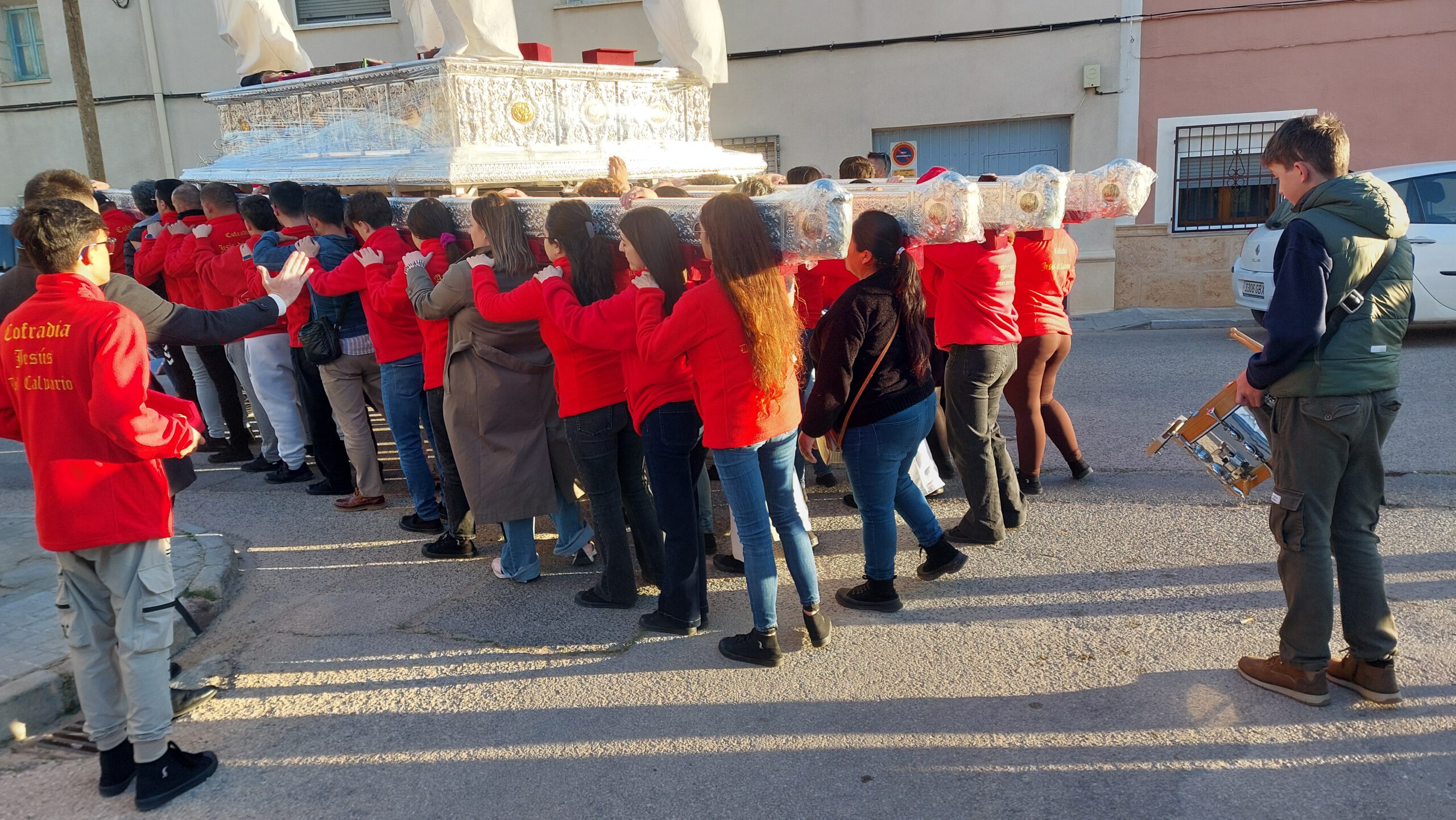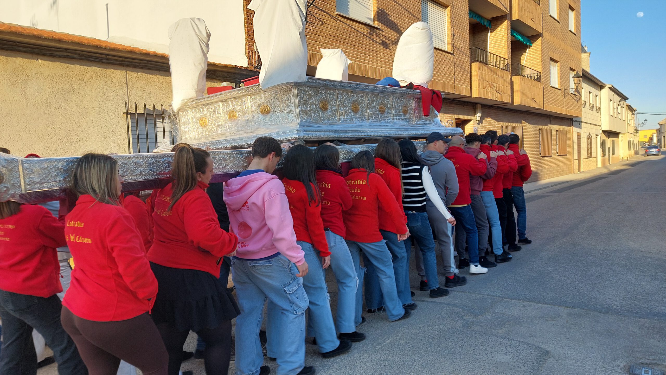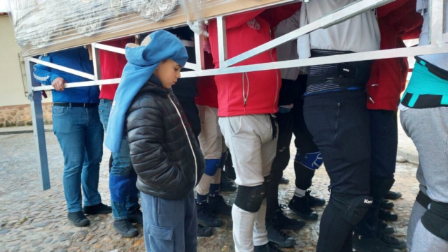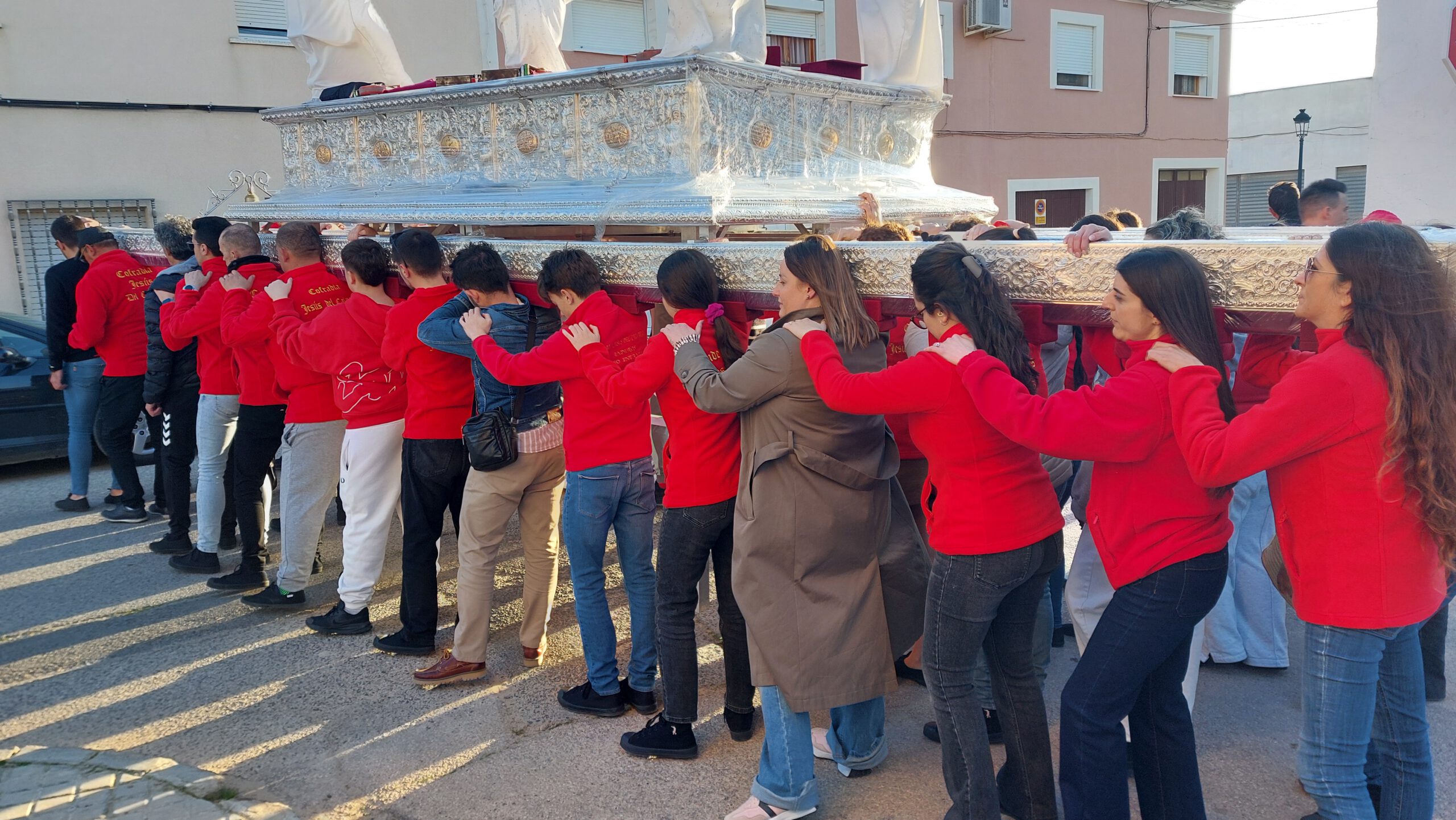 En Cuaresma, las cuadrillas de los pasos de costaleros, anderos y jóvenes portadores de la Virgen ensayan en las tardes de domingo para aprender, perfeccionar el paso, conocer las marchas, mantener una relación cordial con sus compañeros… Todo un honor para la Hermandad, que tantos jóvenes y veteranos dediquen un tiempo al ensayo de lo que será la salida de nuestros Sagrados Titulares.