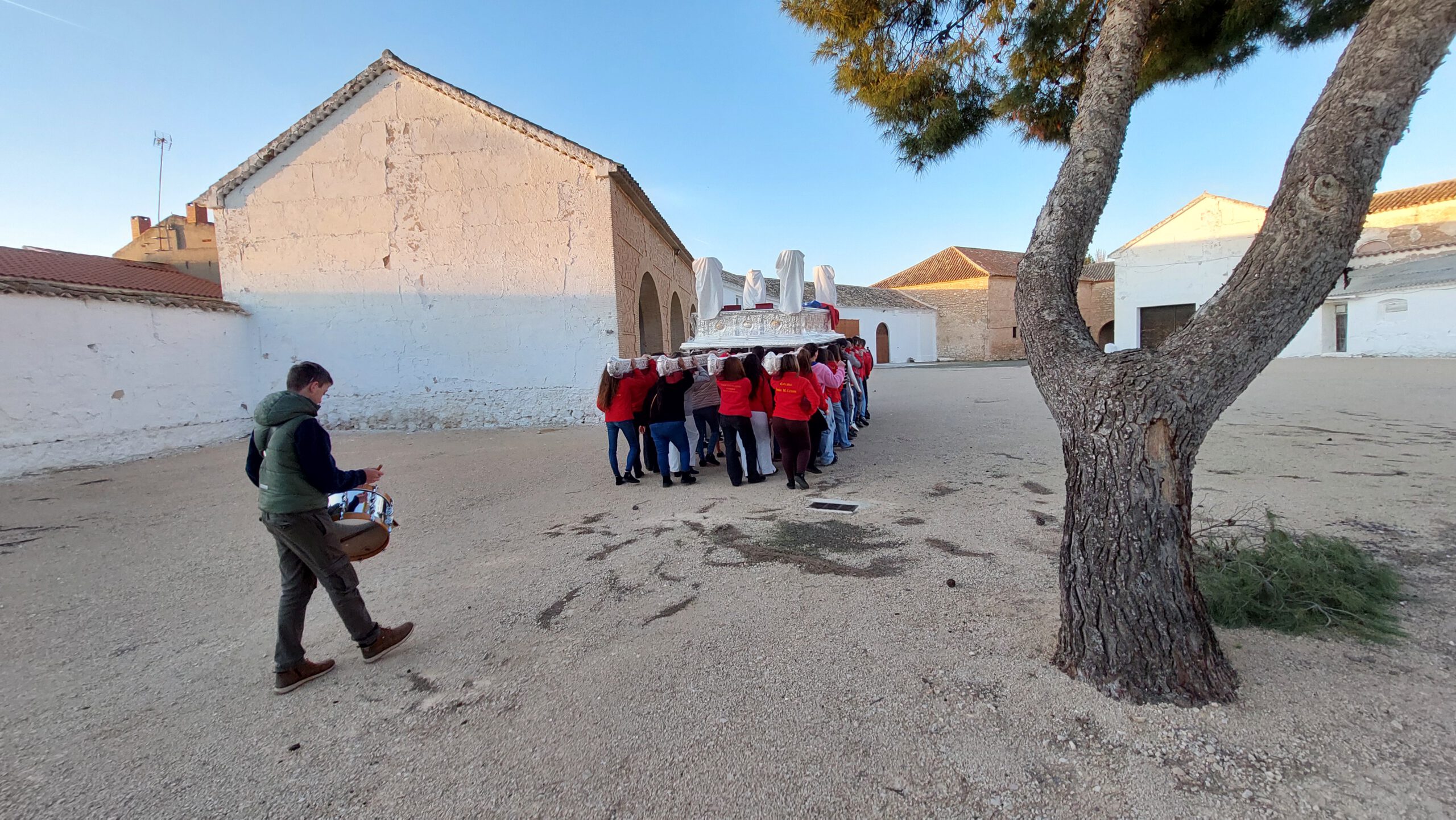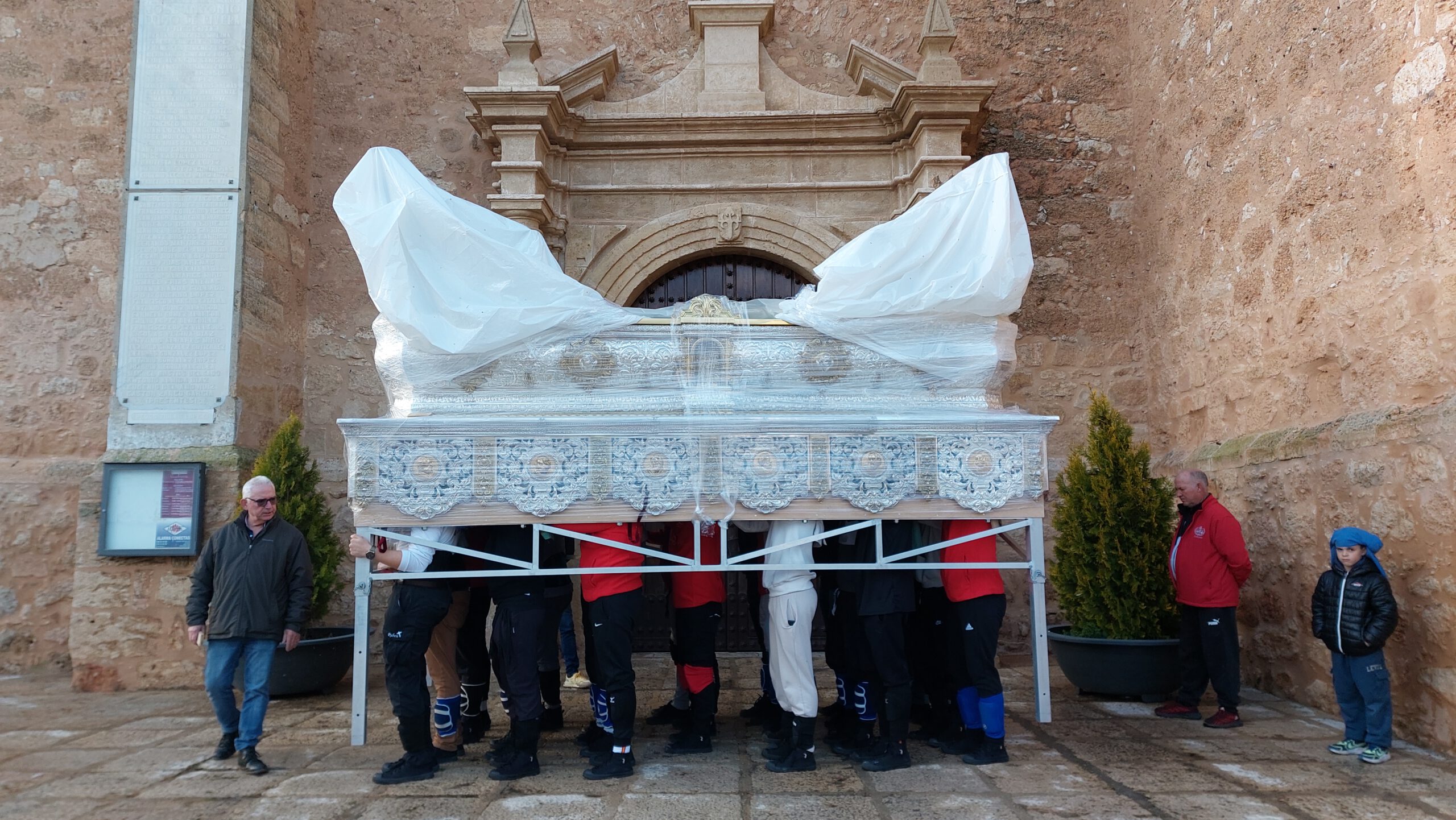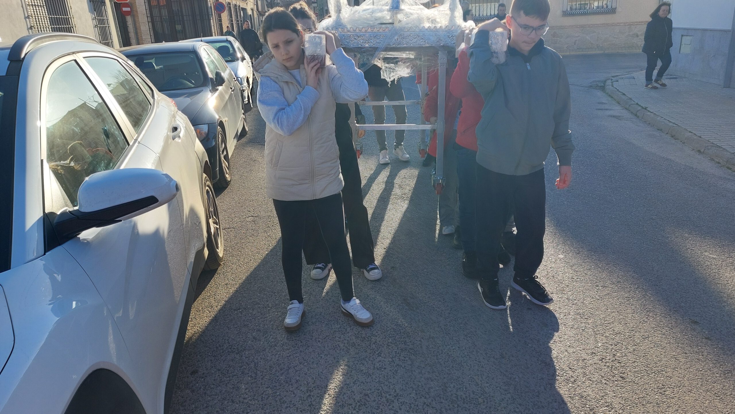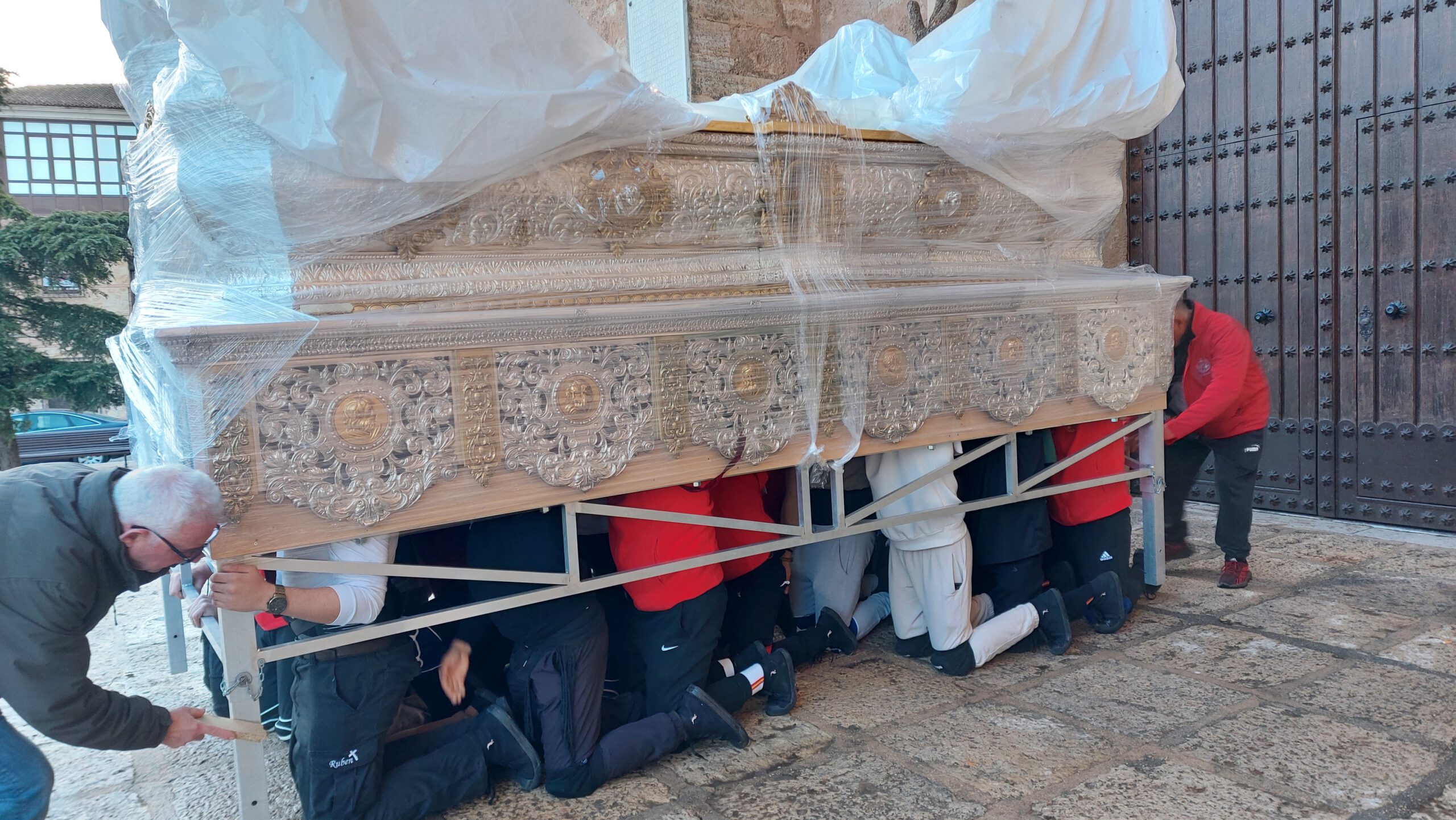 En Cuaresma, las cuadrillas de los pasos de costaleros, anderos y jóvenes portadores de la Virgen ensayan en las tardes de domingo para aprender, perfeccionar el paso, conocer las marchas, mantener una relación cordial con sus compañeros… Todo un honor para la Hermandad, que tantos jóvenes y veteranos dediquen un tiempo al ensayo de lo que será la salida de nuestros Sagrados Titulares.