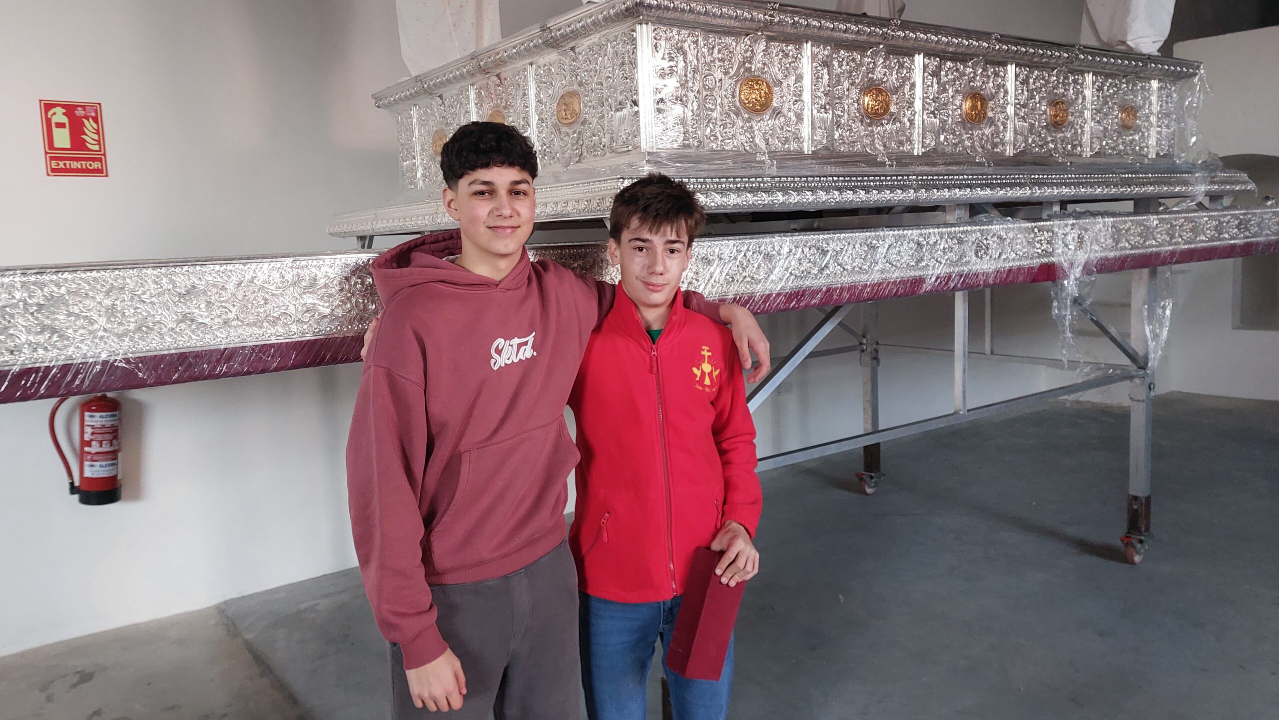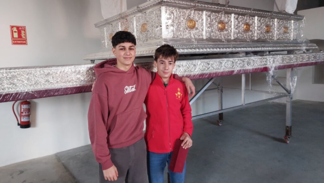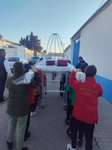 Los niños y jóvenes del paso de la Paz y Juventud han tenido ocasión de ensayar con el nuevo paso, mucho más cómodo y adaptado a ellos.