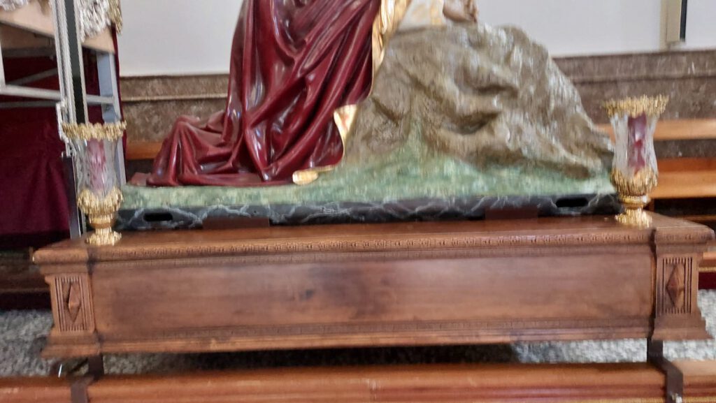 - Por último, también se ha restaurado la mesa situada en la Parroquia de Nuestra Señora de la Asunción, lugar donde se encuentra todo el año La Oración en el Huerto.